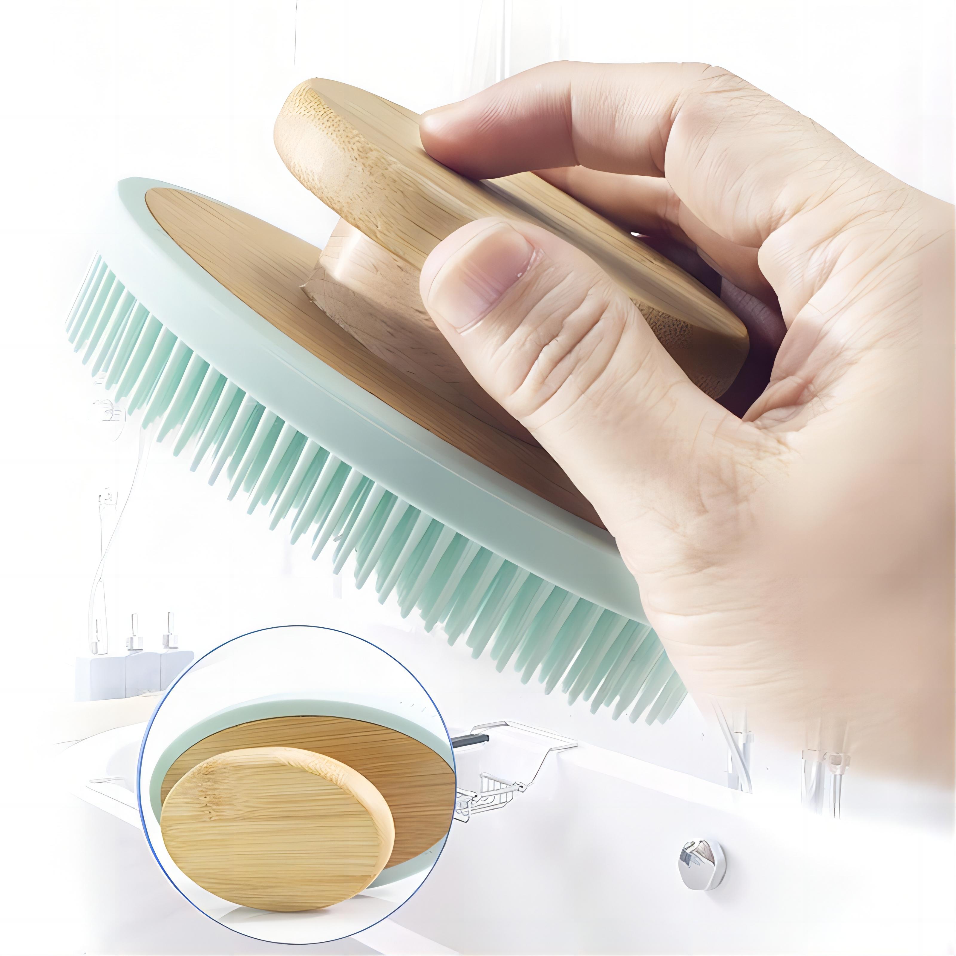 Bath Shower Bamboo Silicone Body Dry Brush Gentle for Skin Exfoliating Back Wash Cleaning Scrub Massager Silicone Body Scrubber